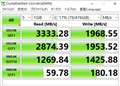 - PCIe Gen3 ×4インターフェイスを採用し、4レーンで同時にデータの送信と受信を行うので、最大3400MB/sの読み出しと1900MB/sの書き込みが可能。