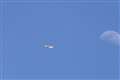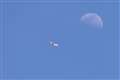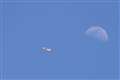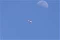 青空に浮かぶ月の近くを飛行するシーンを撮影しましたが