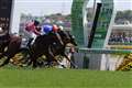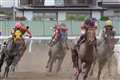 全力疾走している競走馬は、まるで空中を飛ぶように走っていますね。