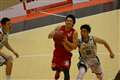 ディフェンスを切り裂いて、ゴール下に侵入し、シュートを放つ選手を