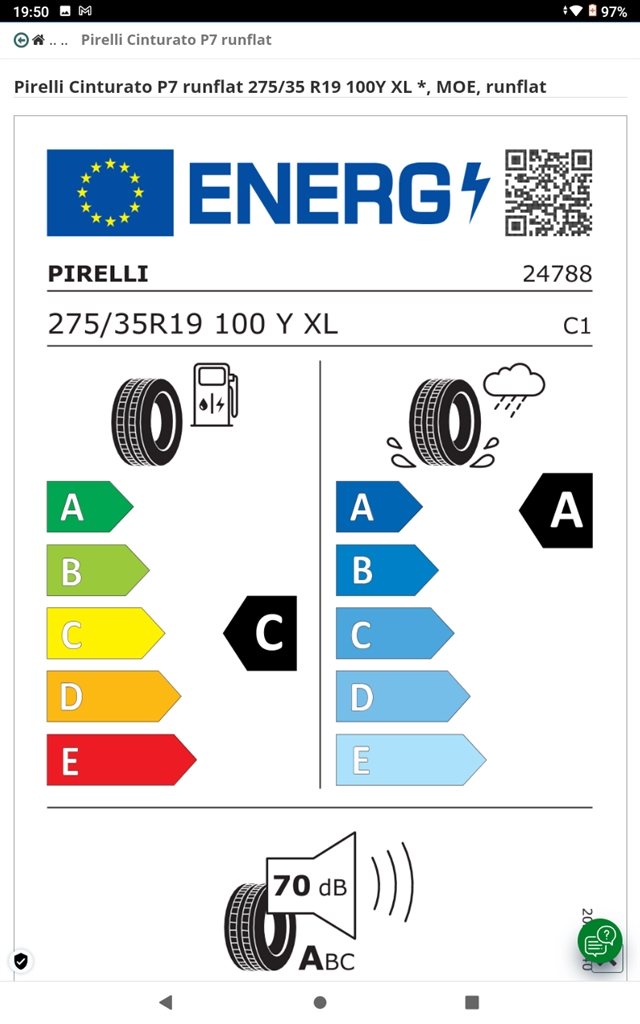 ピレリ [1本] CINTURATO P7 RUN FLAT 275/35R19 100Y XL ☆MOE 銀色なヴェゼルさんのクチコミ掲示板画像1/3