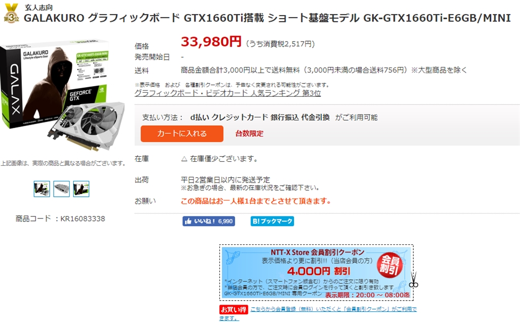 玄人志向 GALAKURO GK-GTX1660Ti-E6GB/MINI [PCIExp 6GB] まぐたろうさんのクチコミ掲示板画像1/1