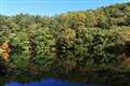 砂防ダム湖は静寂に包まれ、カモ達がゆっくりと羽を休めていました。