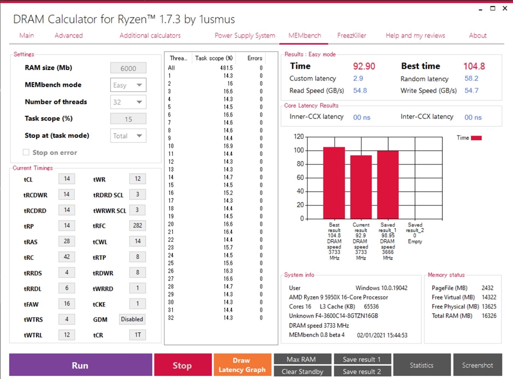 『92秒台』G.Skill F4-3600C16D-16GTZN [DDR4 PC4-28800 8GB 2枚組] シルバーフライさんのクチコミ掲示板画像1/1