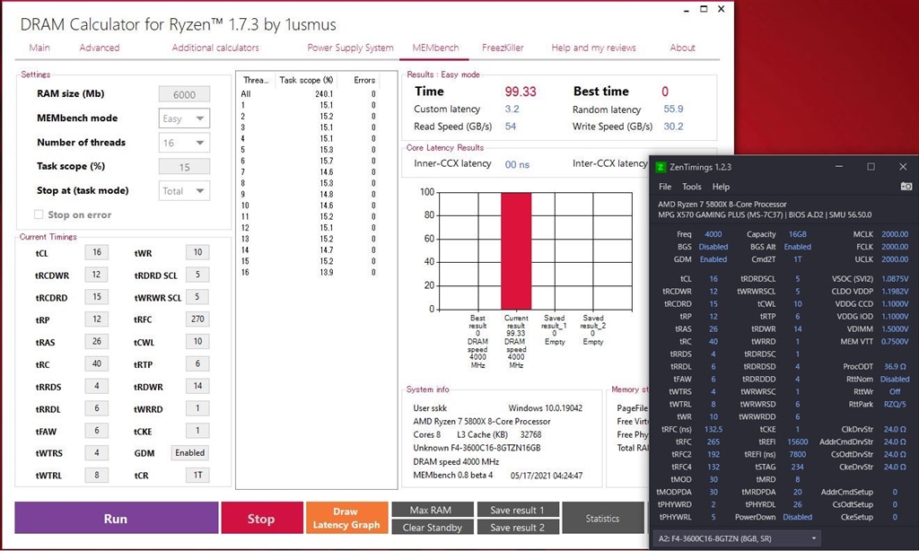 G.Skill F4-3600C16D-16GTZN [DDR4 PC4-28800 8GB 2枚組] オリエントブルーさんのクチコミ掲示板画像1/2