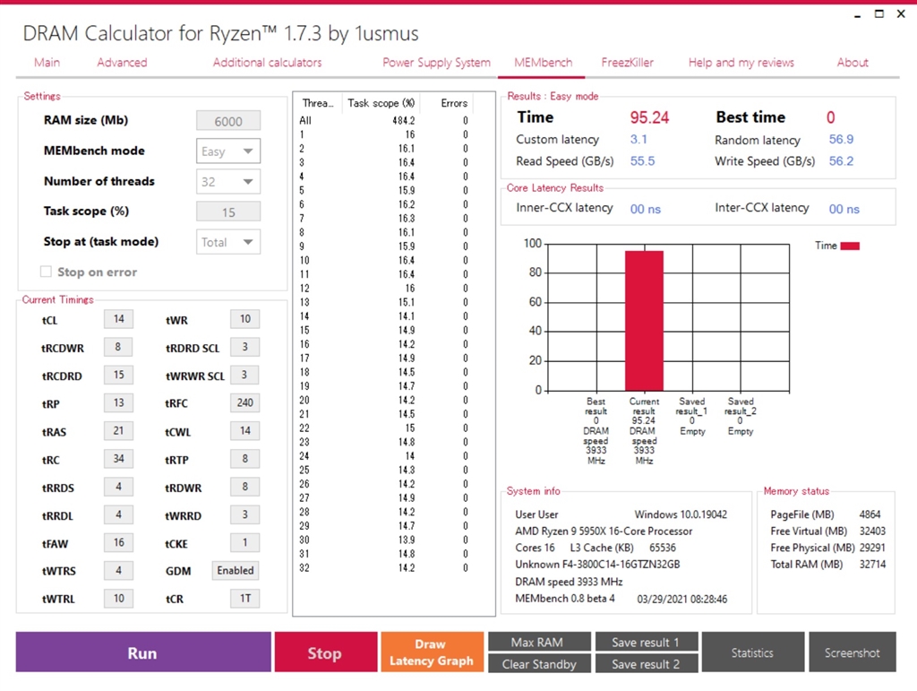 DRAM Calculatorではエラー無し 5950X