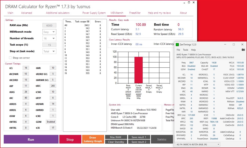 G.Skill F4-3600C16D-16GTZN [DDR4 PC4-28800 8GB 2枚組] オリエントブルーさんのクチコミ掲示板画像2/3