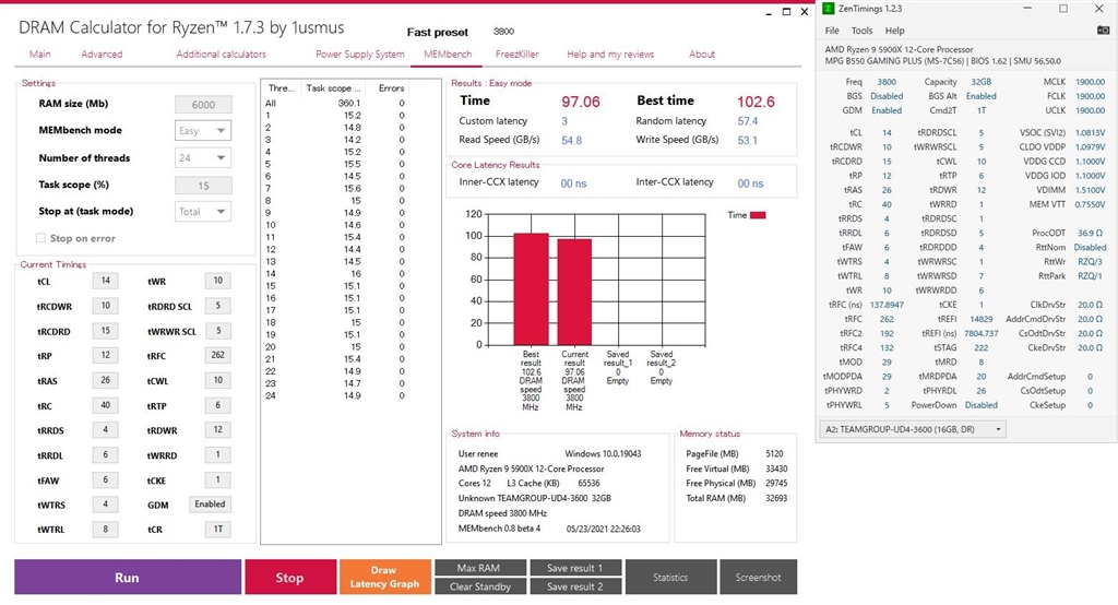 『今の設定です』G.Skill F4-3600C16D-16GTZN [DDR4 PC4-28800 8GB 2枚組] あずたろうさんのクチコミ掲示板画像1/3
