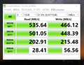 SSDの初期不良かと思い、店舗で店員さんに確認していただいたのですが、お店のPCでは異常がなく、正常の動いている状態でした。また、SSDを外し、外付けででUSB-Cに繋ぐと読み込みも書き込みも十分な速度が出ており、内部の問題だと感じました。