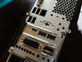 2スロットを使用するビデオカードは(自分の知りうる限り)上段の PCI Express × 16 を使用する仕様ですので、、せっかく2スロット分を増設できる dynaDesk DT100 ですが、PCI Express × 1 が上段、PCI Express × 16 が下段であり、電源が近くにあってスペースがないため、1スロットを使用するビデオカードの中からそれなりに性能の高いものを選び下段に装着したところ、ちゃんと増設できて認識されました。
