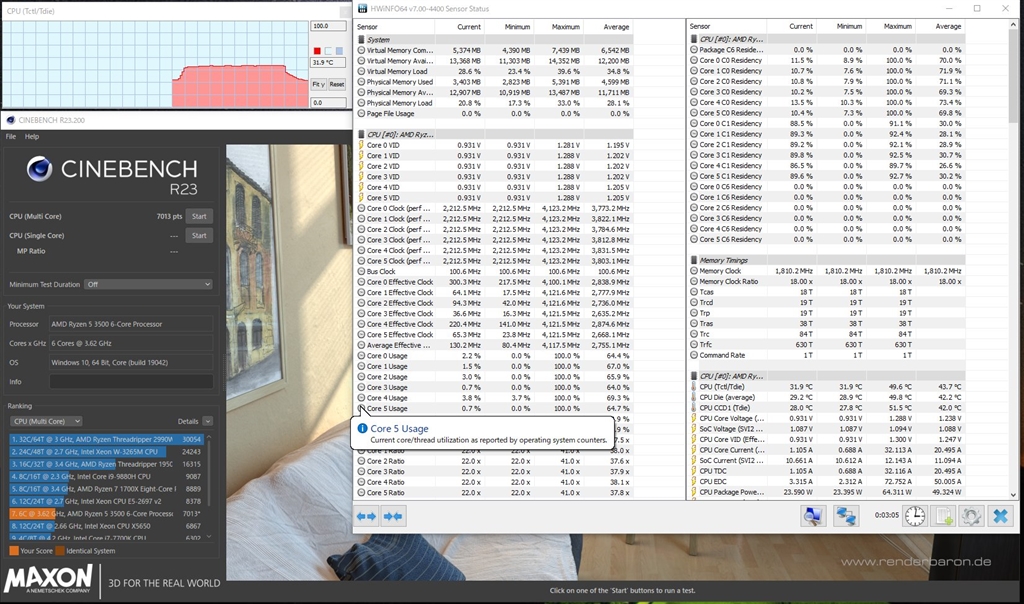 『ASSASSIN3にて定格状態。CINEBENCH R23廻した後』AMD Ryzen 5 3500 BOX 軽部さんのクチコミ掲示板画像1/1