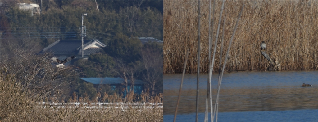 右はP1000(3000o)で左より手前のチュウヒを撮影するもこんな状況