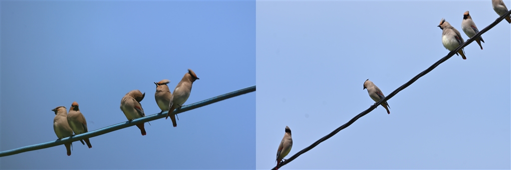 | じいさんの知らなかったこの時期のヒレンジャクの来訪の様子・・・灯台下暗しです | R7でビデオ回すもコンセプトなく上へ下へでこのような稚拙なレポご容赦 |