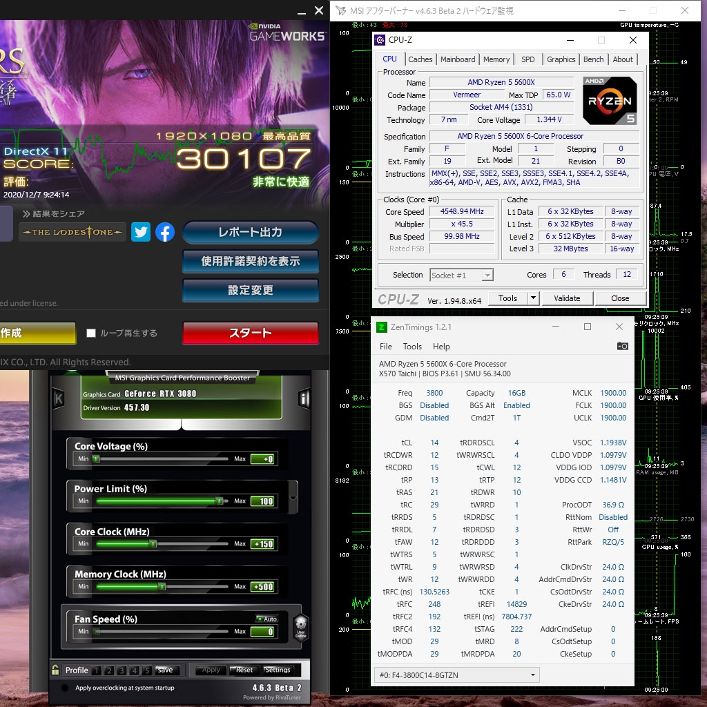 FF14漆黒 5600X + 3080Trinity +30 19℃ CPU-Z