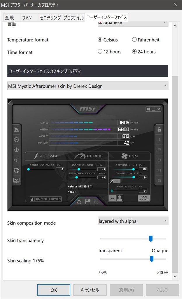 skin設定