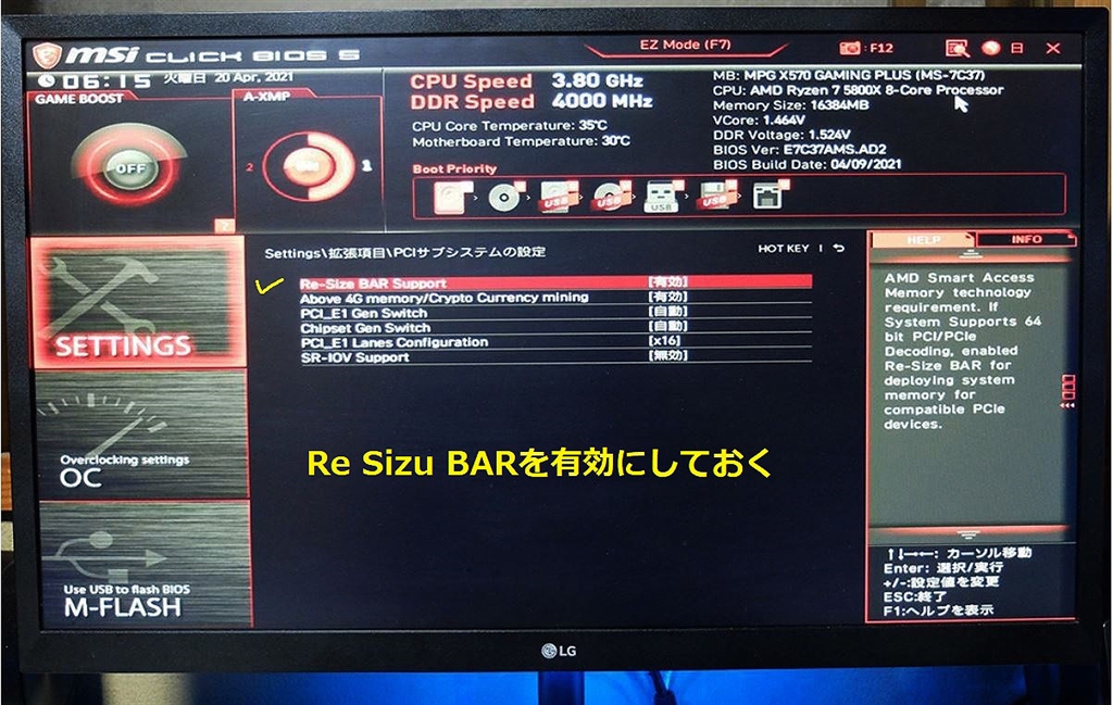 Resized BAR 設定