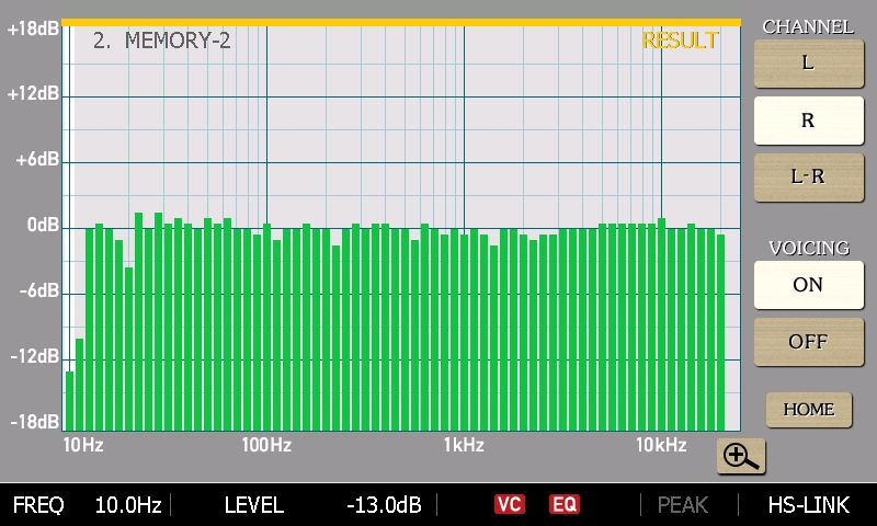 DG-68の補正後、大よそ15Hzぐらいから20kHzまでほぼフラットな周波数特性に