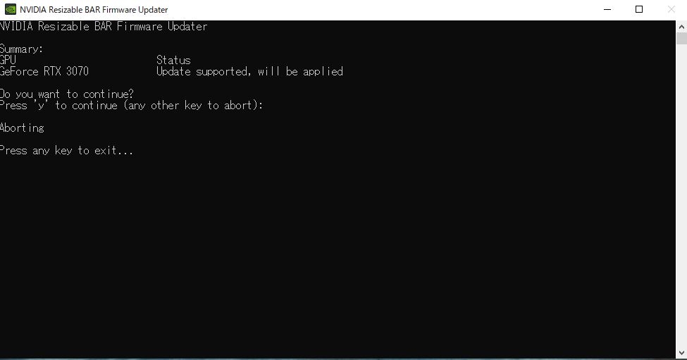 『エンターを押してアボート後』玄人志向 GALAKURO GAMING GG-RTX3070-E8GB/TP [PCIExp 8GB] Gankunさんのクチコミ掲示板画像3/3