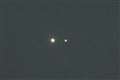 2020年12月22日、木星と土星が接近、東京近郊の3階ベランダから、日没間もなく、地平線近く、条件は非常に悪いなか。