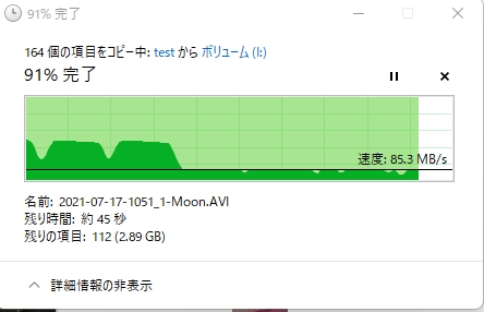 書き込み途中でスピードが落ちる
