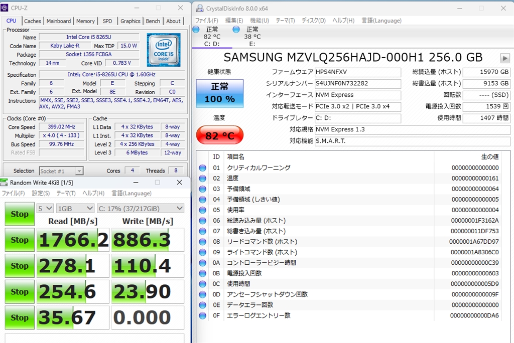 クリスタルDISK INFO 82℃ 表示中