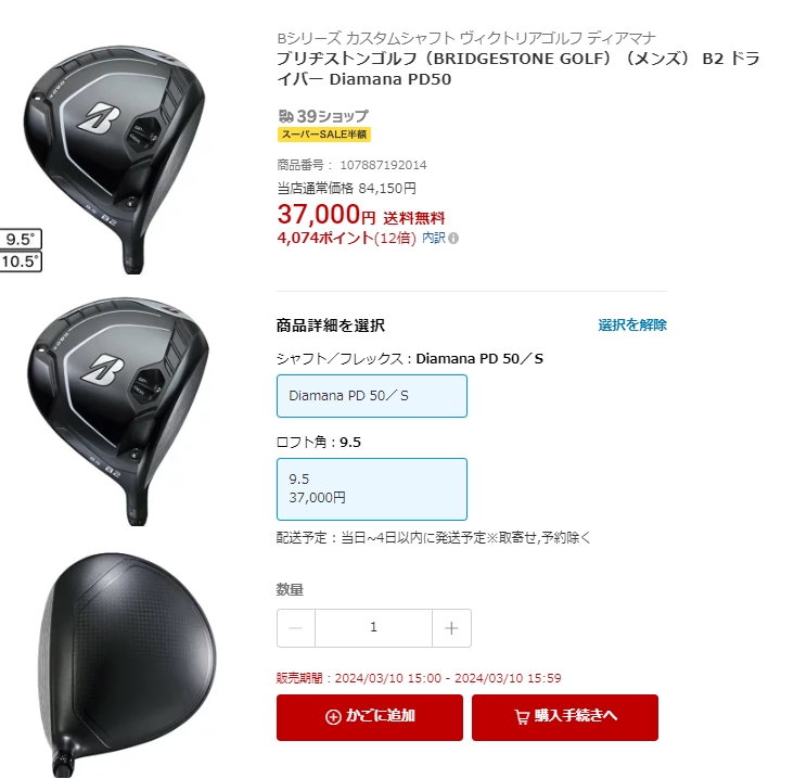 B2 ドライバー [Diamana PD50 フレックス:S ロフト:9.5]