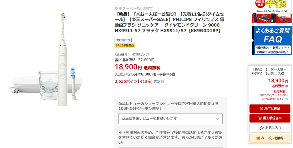 フィリップス ソニッケアー ダイヤモンドクリーン 9000 HX9911/57 [ホワイト] まぐたろうさんのクチコミ掲示板画像1/1