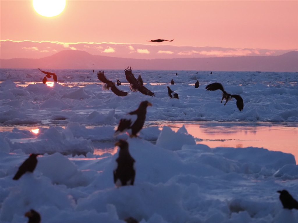 北方領土から上がる朝日を浴びて