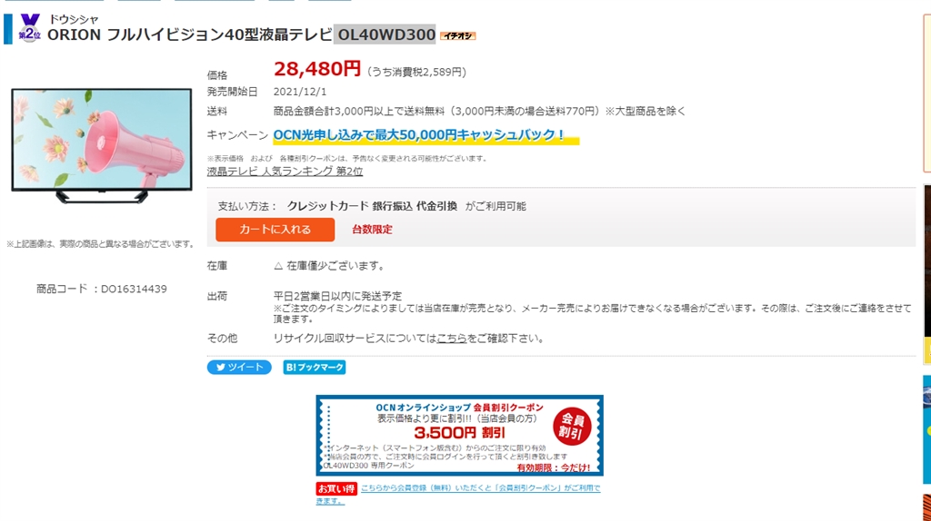 オリオン OL40WD300 [40インチ] まぐたろうさんのクチコミ掲示板画像1/1