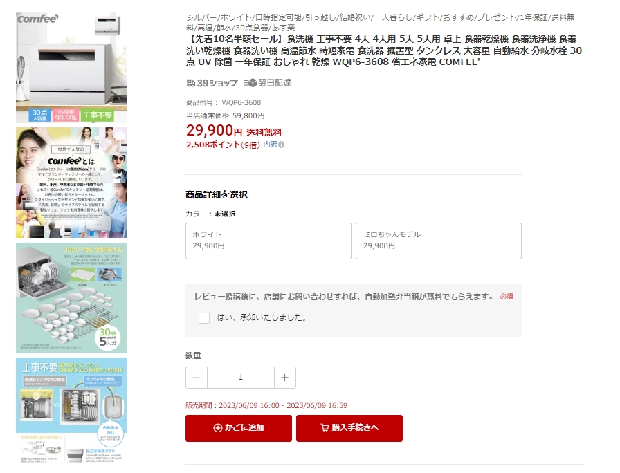 Comfee' WQP6-3608 W/T まぐたろうさんのクチコミ掲示板画像1/1