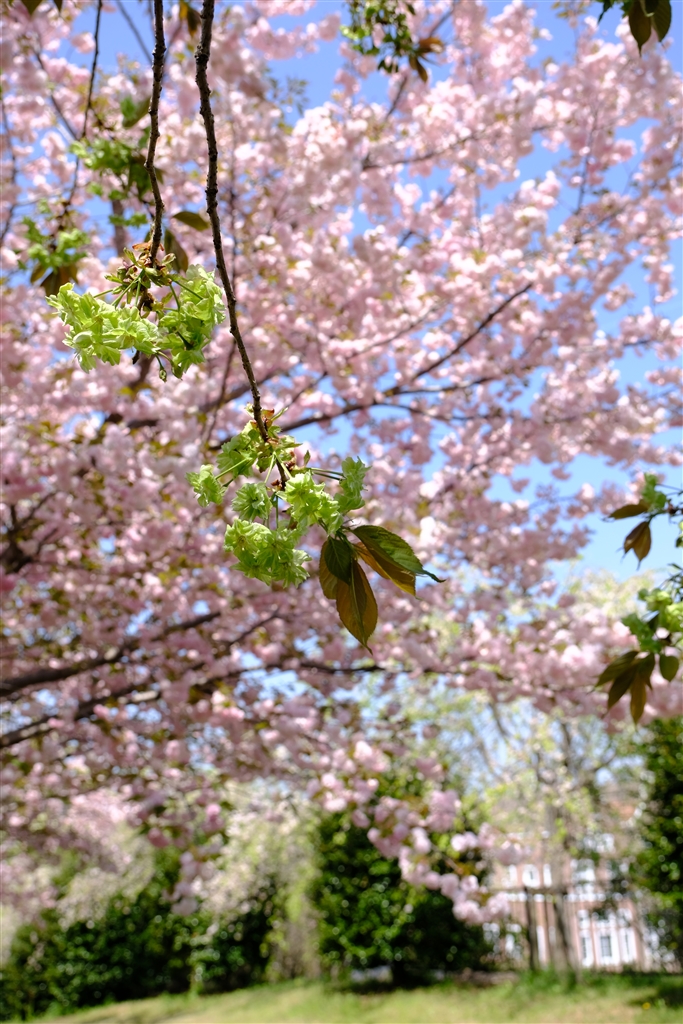 御衣黄桜…薄緑の花は桜色のヤマ桜とは異質です。でも何となく惹き込まれます