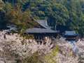 奈良県桜井市の長谷寺、桜咲く頃の風景