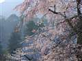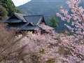 奈良県桜井市の長谷寺、桜の咲く風景