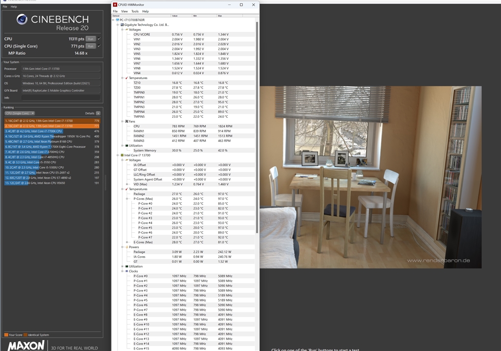 シネベンチR20スコア13700B760WIN11