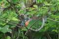 綺麗な青灰色の羽色を撮りたかったのですが、止まっている時はずーっと閉じったままで…残念無念!。