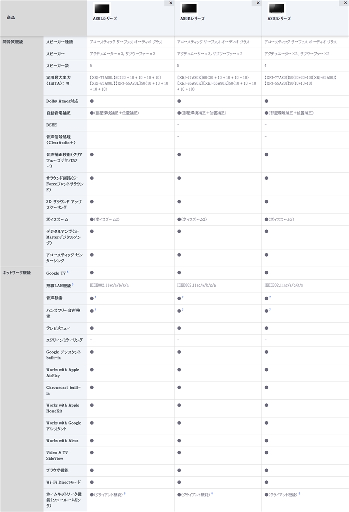 『XRJ-xxA80L/K/Lの比較 その2』SONY BRAVIA XRJ-55A80L [55インチ] 名無しの甚兵衛さんのクチコミ掲示板画像2/4