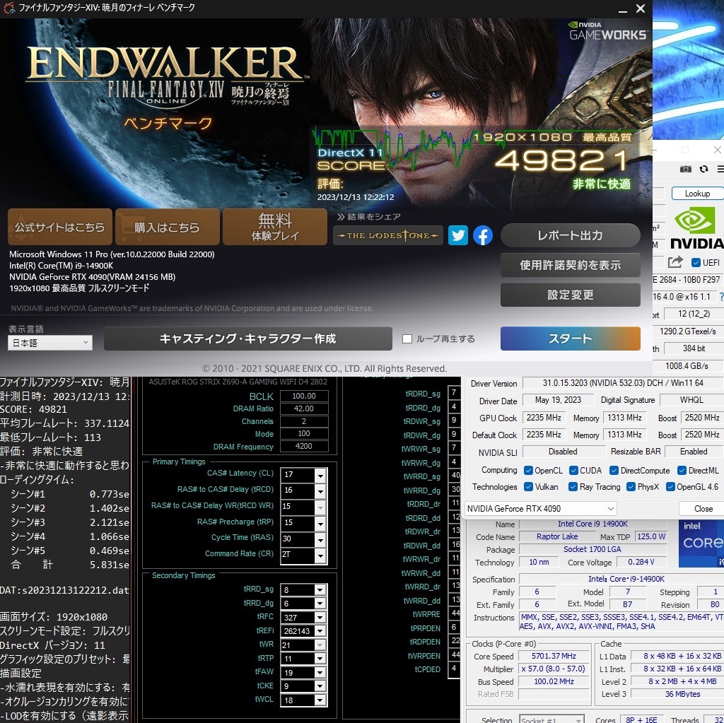 FF14暁月 14900K + 4090 Phantom DDR4-4200CL17 20℃