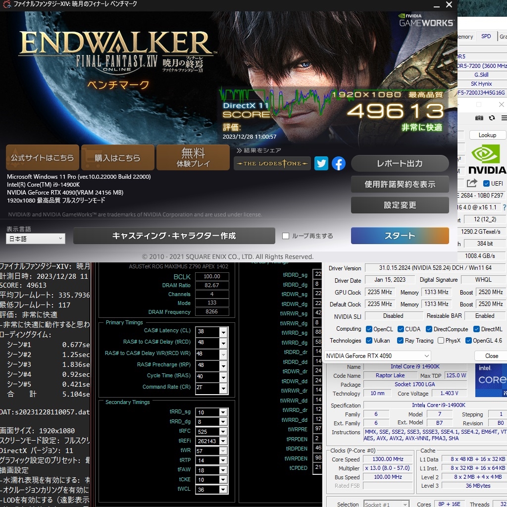 FF14暁月 14900K + 4090 Phantom DDR5-8266CL38(F5-7200 1.47V) 16℃