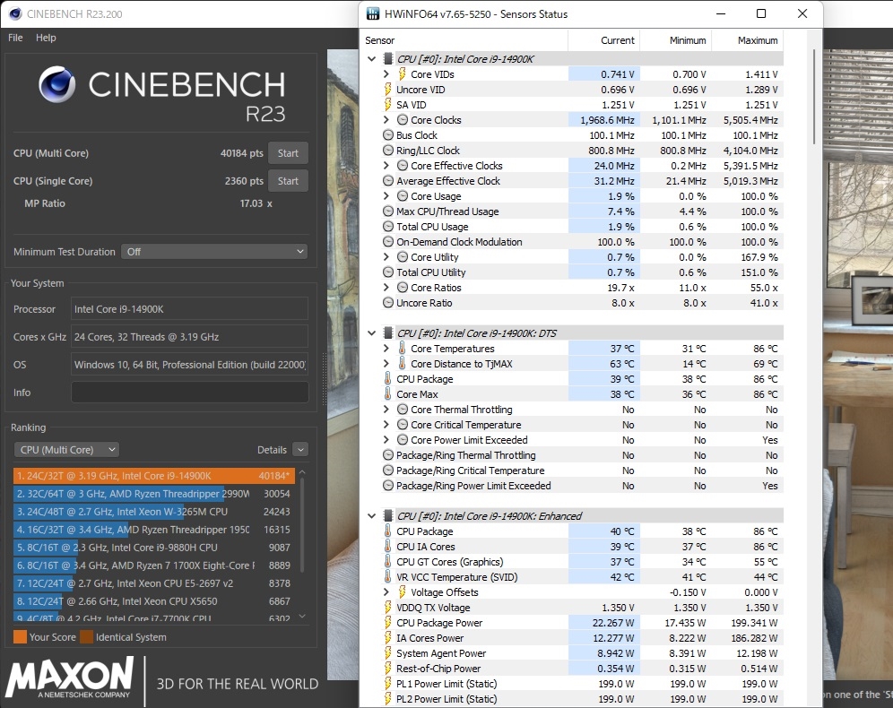 CineR23 14900K(199W) 27℃ bios 2102