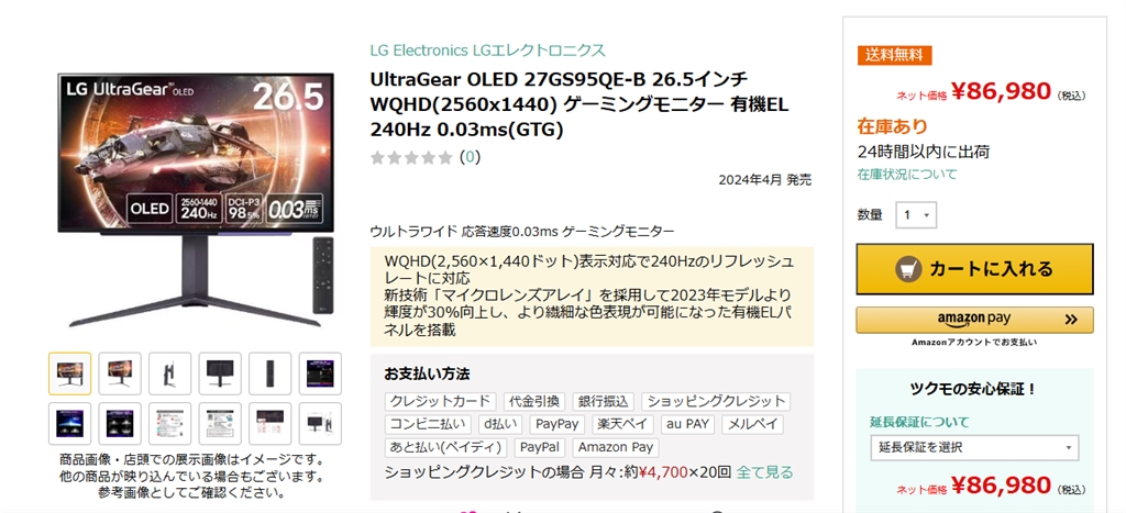 LGエレクトロニクス UltraGear 27GS95QE-B [26.5インチ] まぐたろうさんのクチコミ掲示板画像1/1