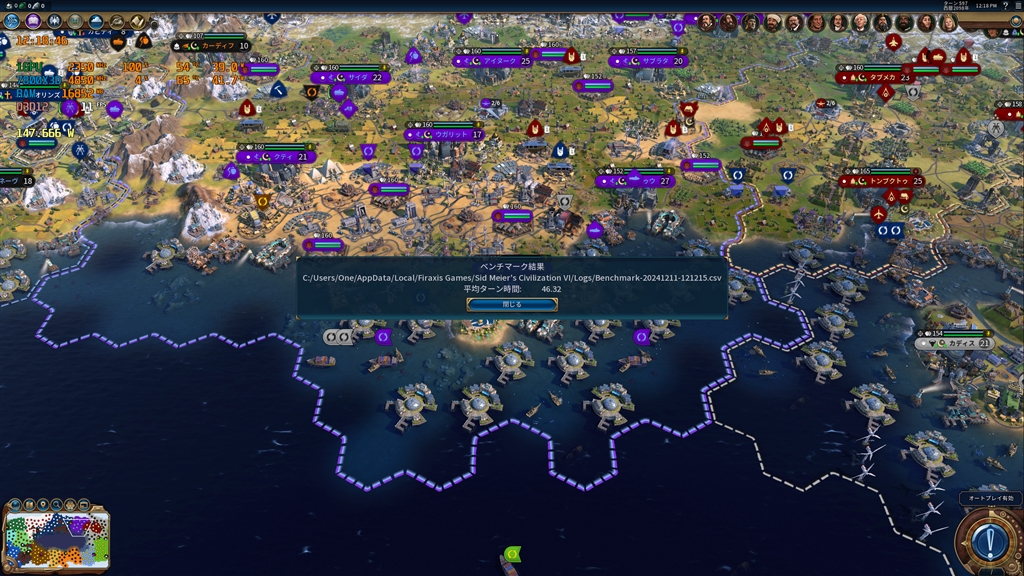 CivilizationVI 1440pウルトラ 7800X3D + iGPU(2.35GHz) 6000CL30(tRFC 480)