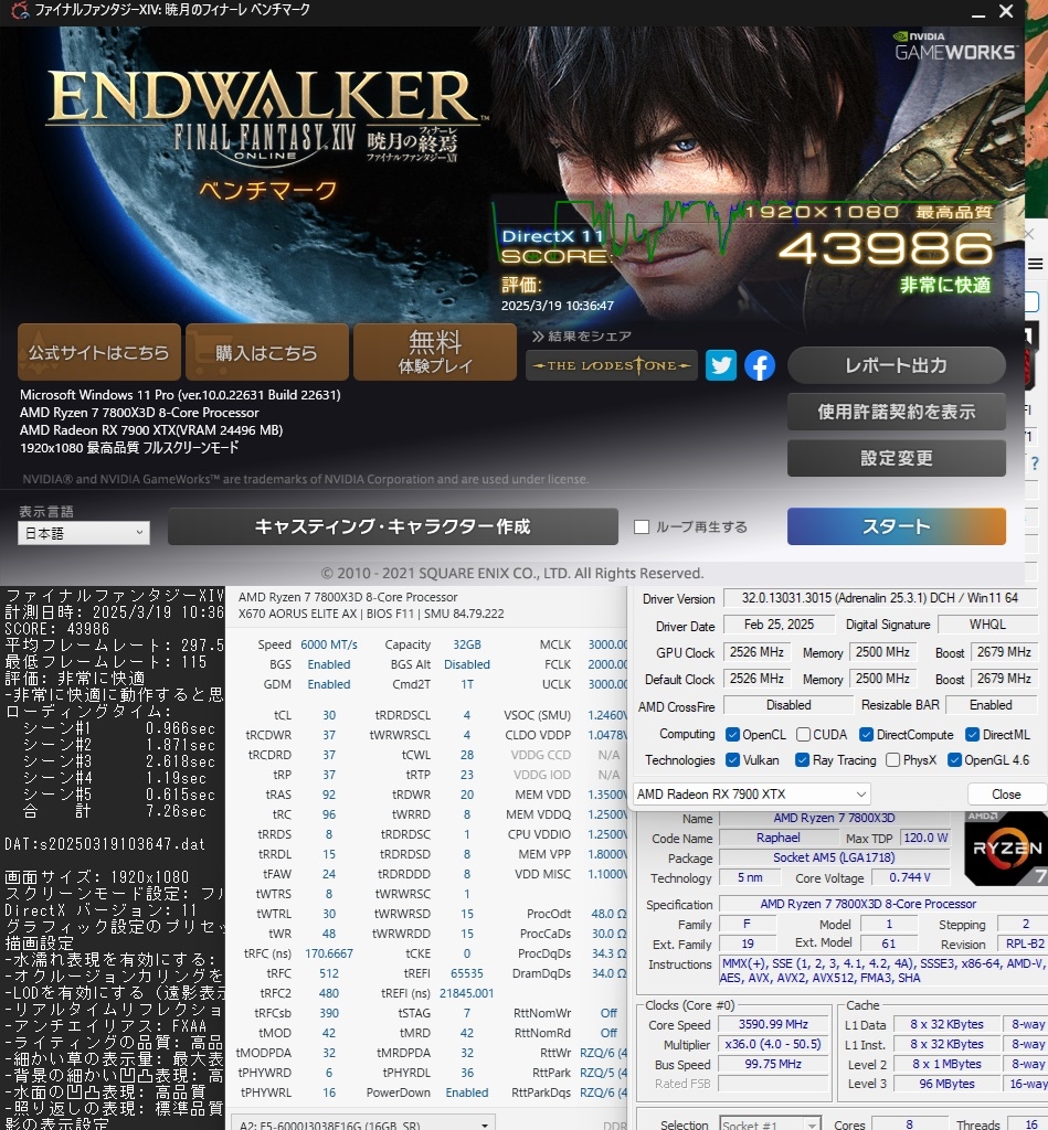 FF14暁月 7800X3D + Nitro+7900XTX DDR5-6000CL30 16℃