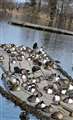 瓢湖で帰りそびれている数少ないカモたちは、少なくなった見物客からエサを貰おうと集まっていました。