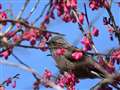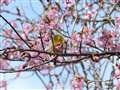 メジロとヒヨが春の恩恵を奪い合っていました。