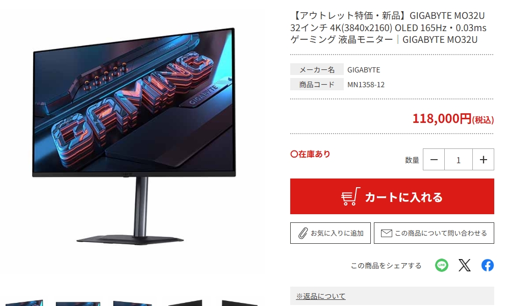 GIGABYTE MO32U [31.5インチ] まぐたろうさんのクチコミ掲示板画像1/1