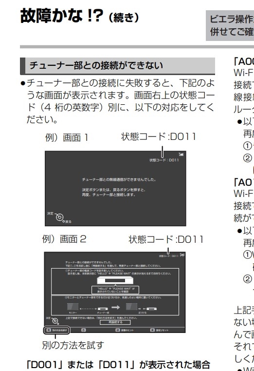 チューナー部と接続できない」エラー