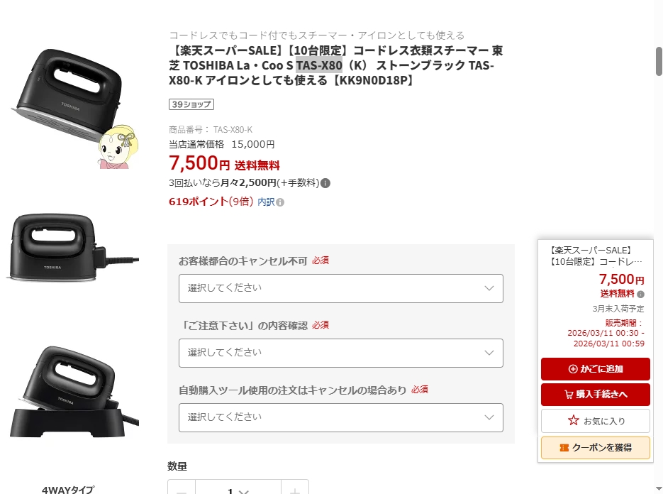 La・Coo S TAS-X80(K) [ストーンブラック]