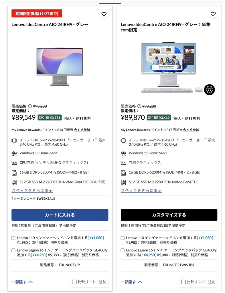 IdeaCentre AIO 24IRH9 Core i5 13420H・16GBメモリー・512GB SSD・23.8型フルHD・IPS液晶搭載 価格.com限定モデル F0HNCTO1WW [クラウドグレー]