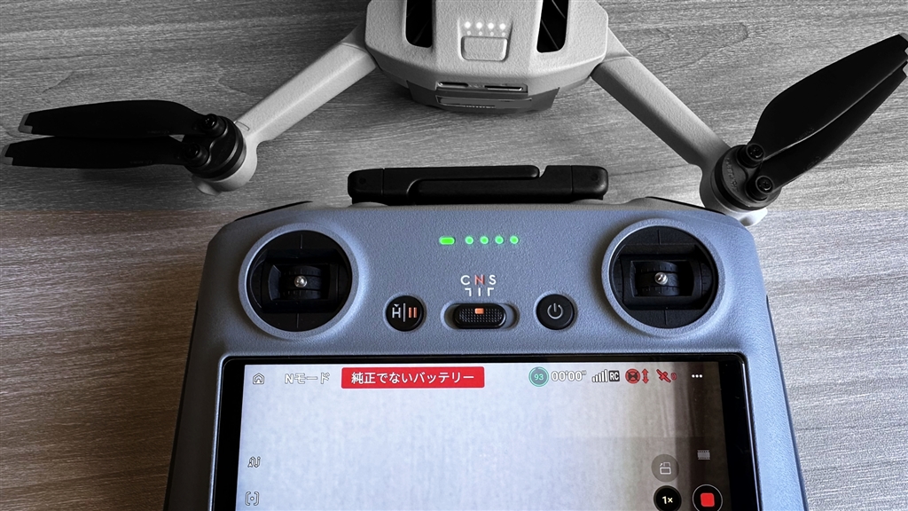 「純正でないバッテリー」と出て飛べません