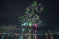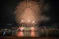 花火会場の反対側から撮ったのですが、会場後方の駐車場の照明も
